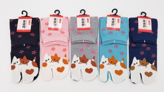 Japanese Socks Tabi Cotton And Pattern Neko Chat Made In Japan Etsy